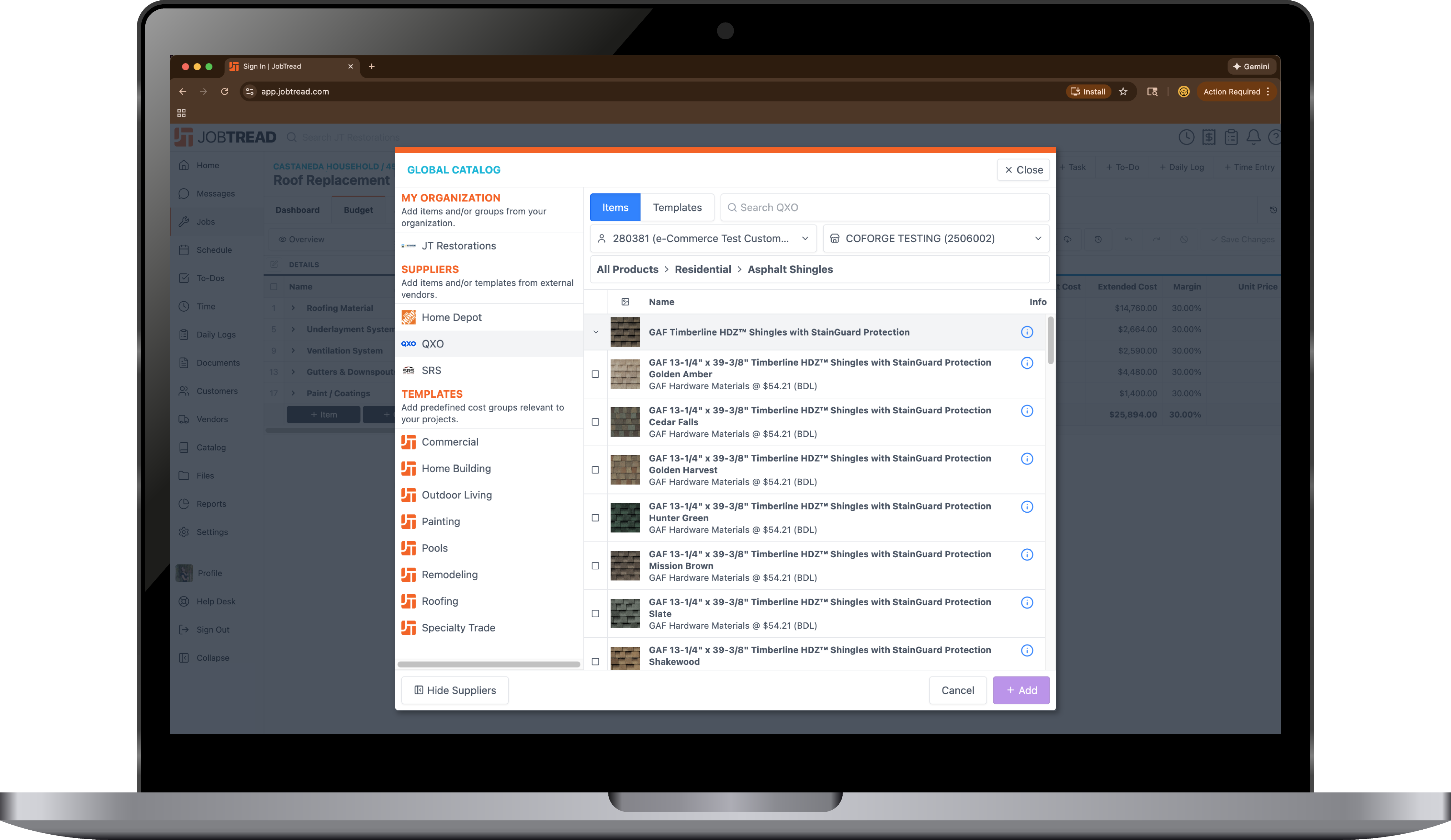 Faster Estimates With Live Product Data Browse QXO products inside JobTread and pull live item details directly into your estimates, budgets, and cost catalog.